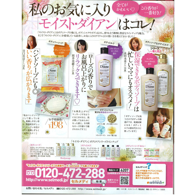 13.09.26女性セブン9月26日号(小学館)に「モイストダイアン・ボディーソープ」が掲載されました。